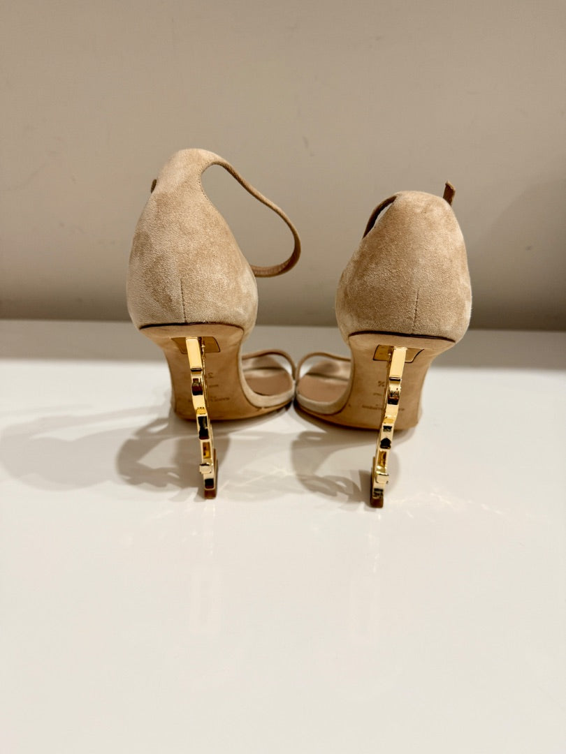Saint Laurent Suede Vernice Opyum 110 Heeled Sandals Pale Beige Women's EU 38.5