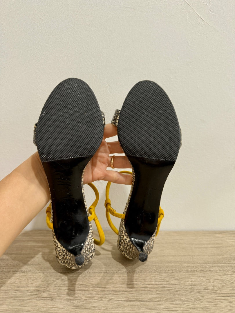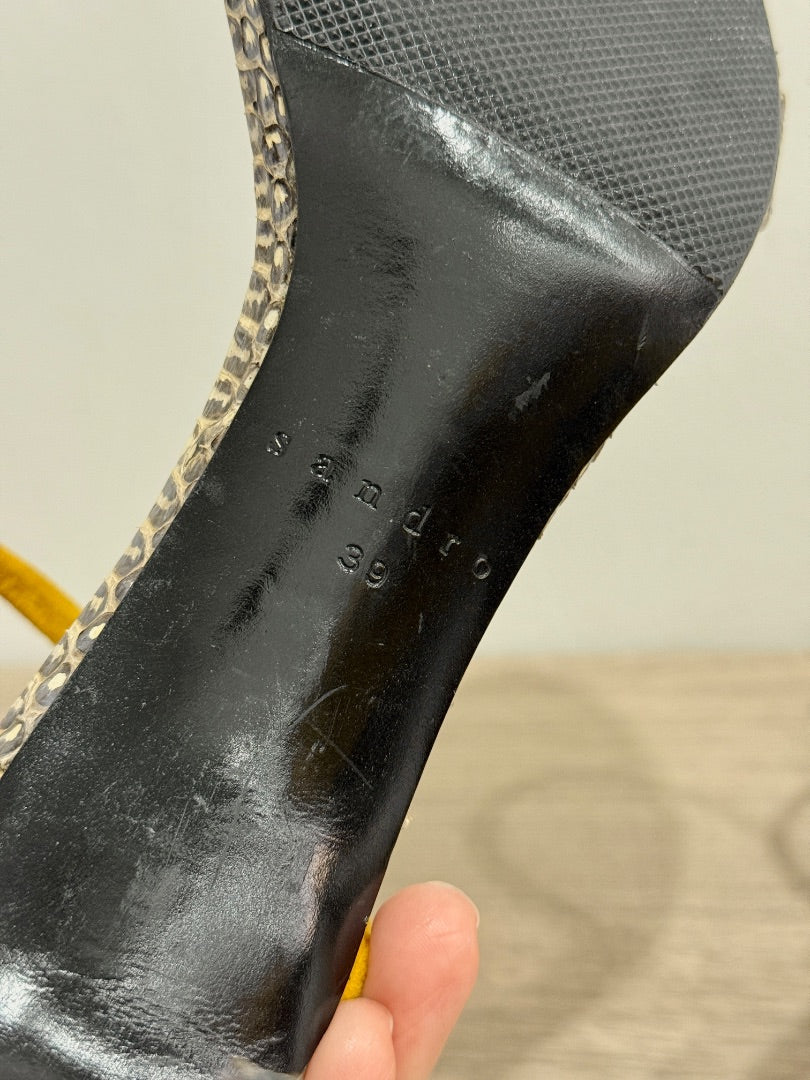 Sandro Python Print Leather & Suede Mid-Heel Ankle Strap Sandals Neutrals EU 39.