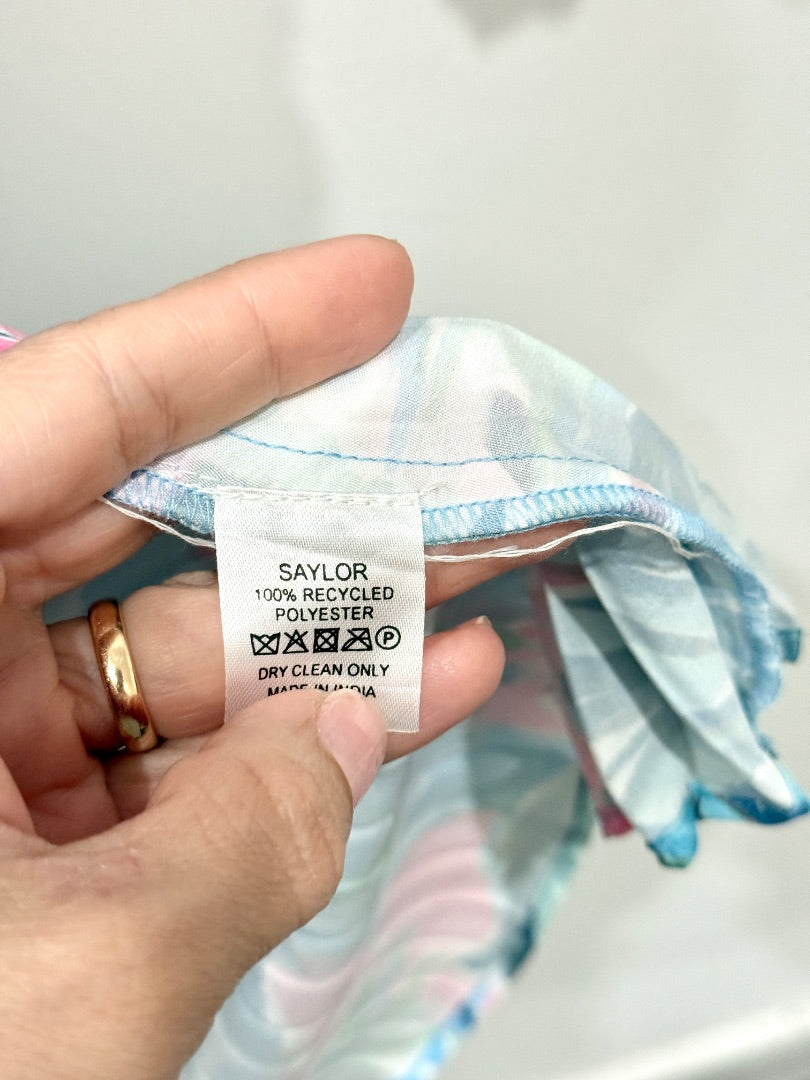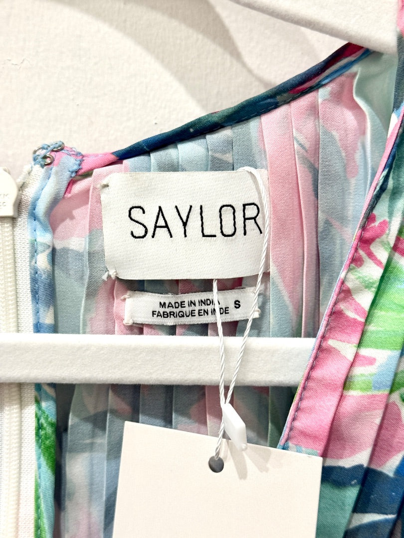 NWOT Saylor Byrd Floral Matte Satin Pleated V-Neck Mini Dress Blue Women's S