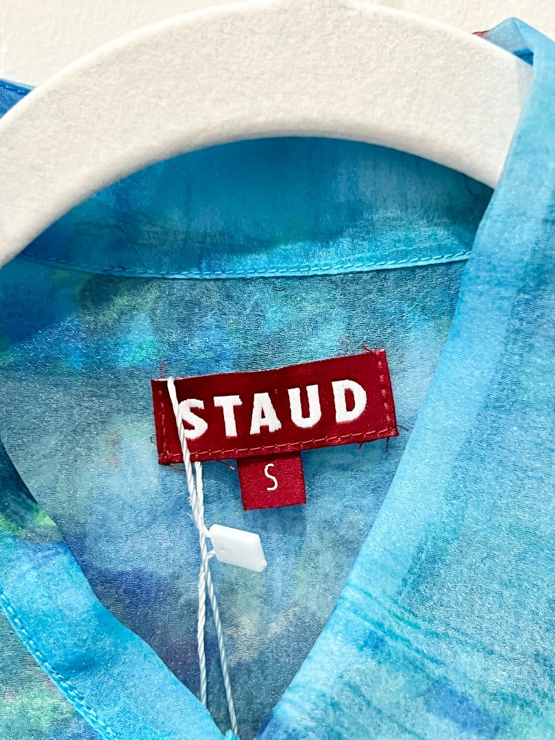 Staud organza printed button down shirt sheer, S