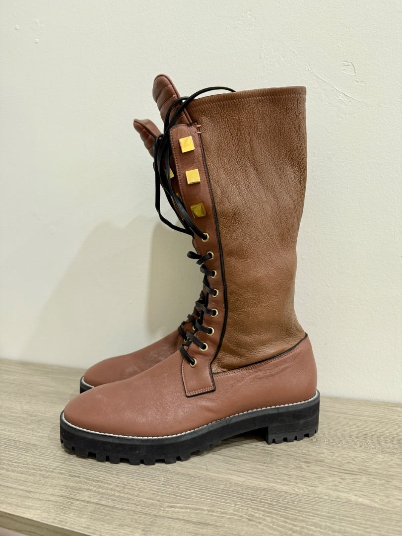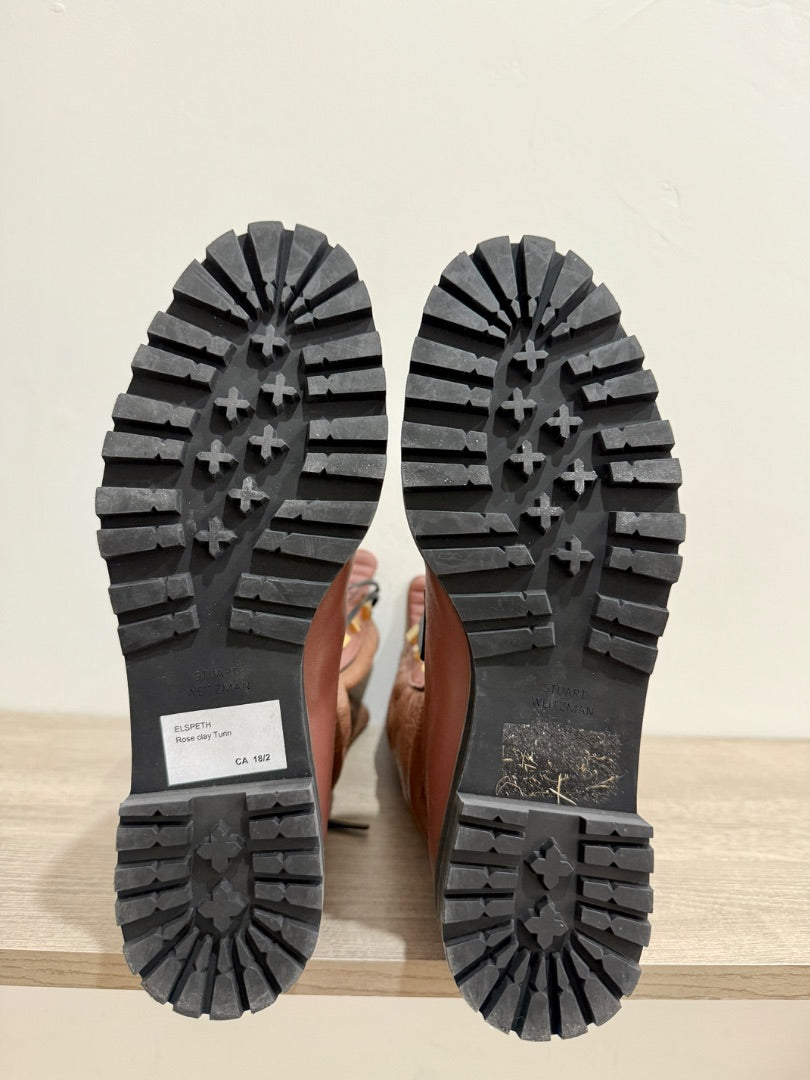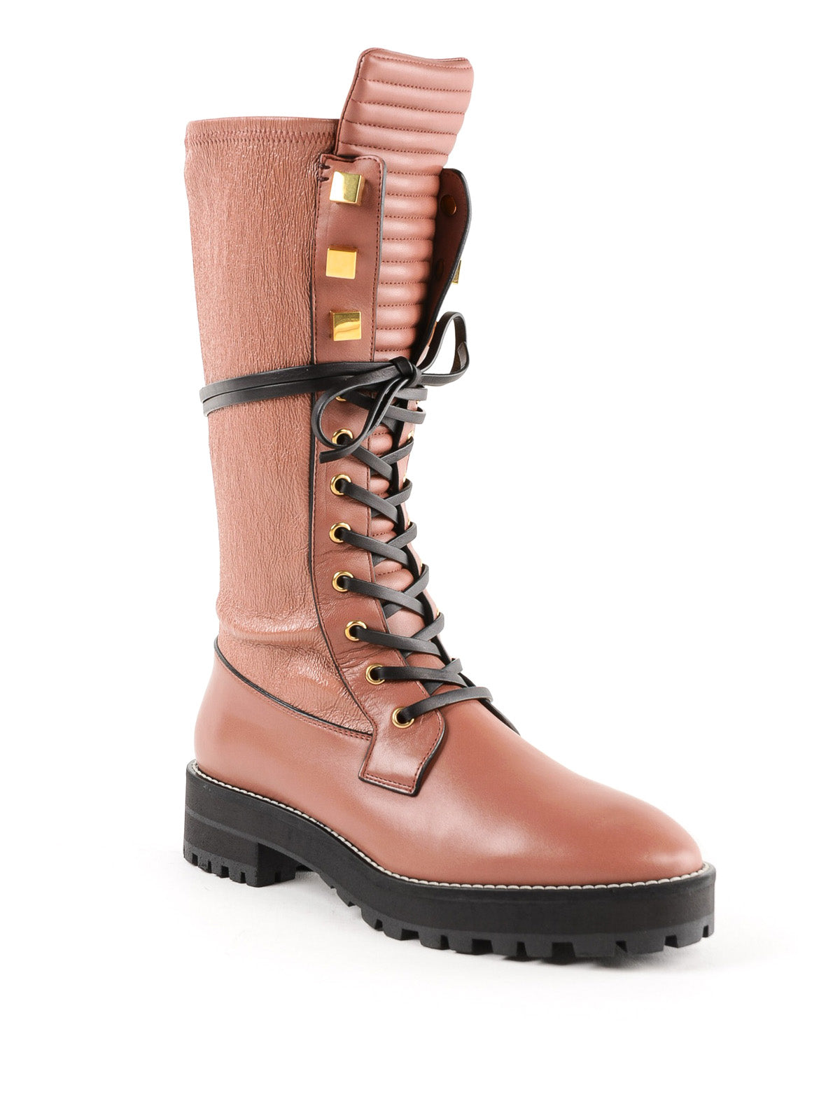 NWOT Stuart Weitzman Elspeth Turin Leather Combat Boots Pink Womens Size US 8.5
