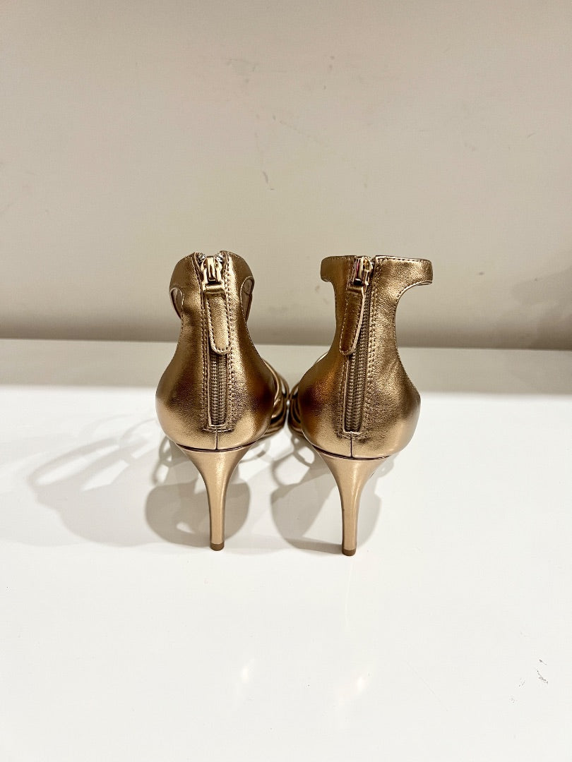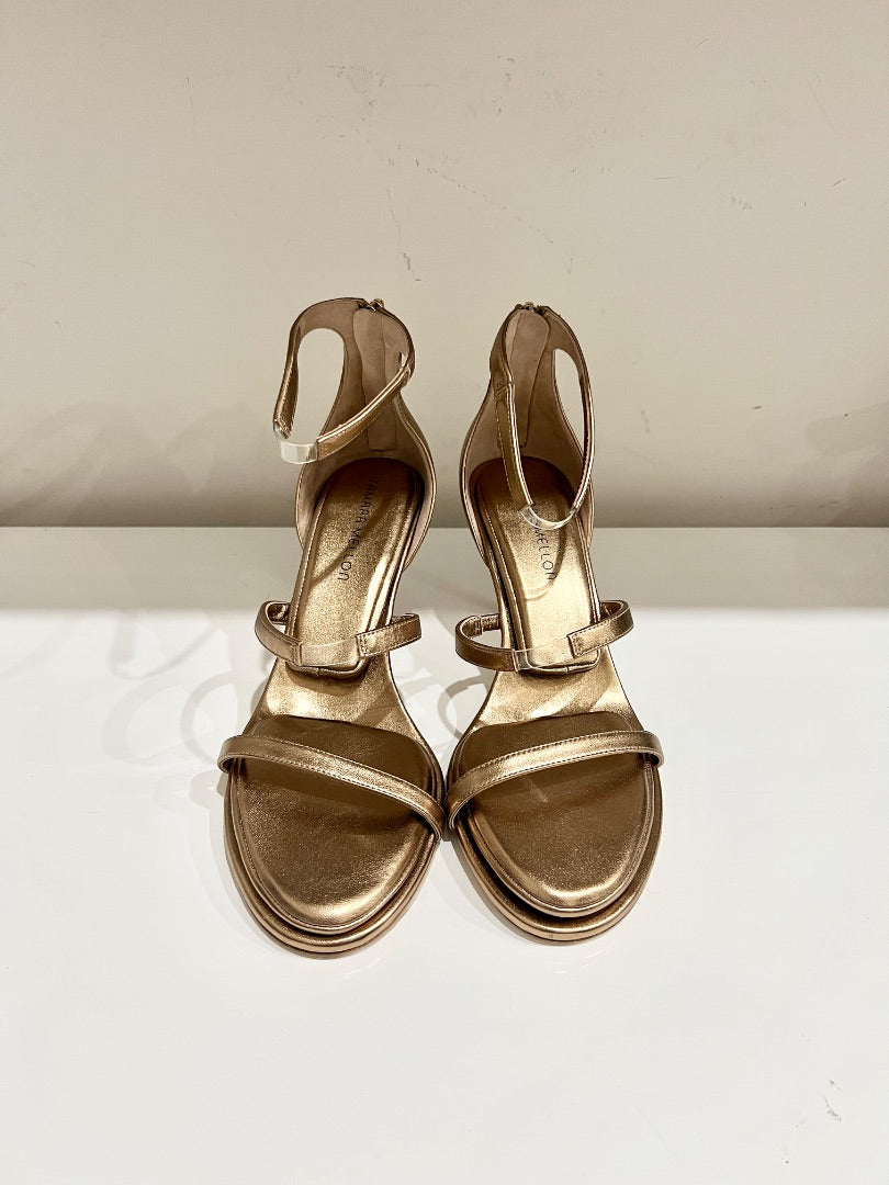 NWOT Tamara Mellon Metallic Mid Heel Strappy Sandals Gold Women's Size US 10