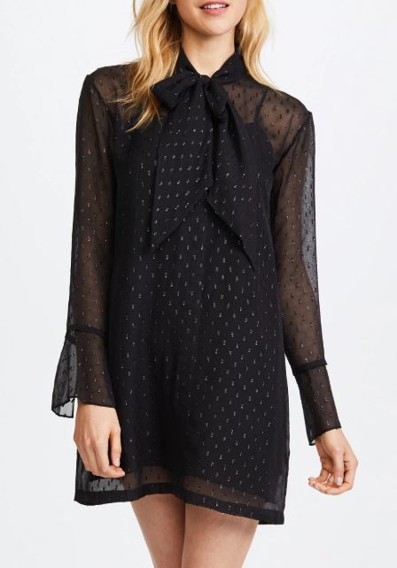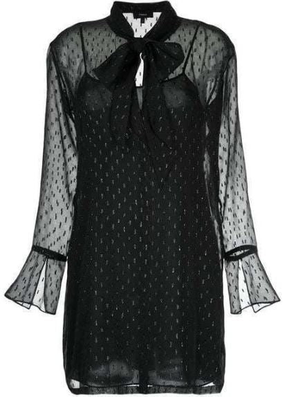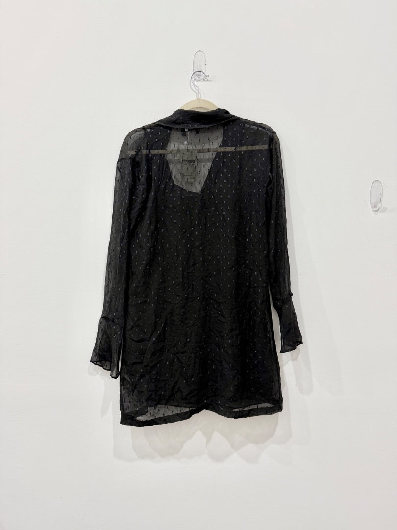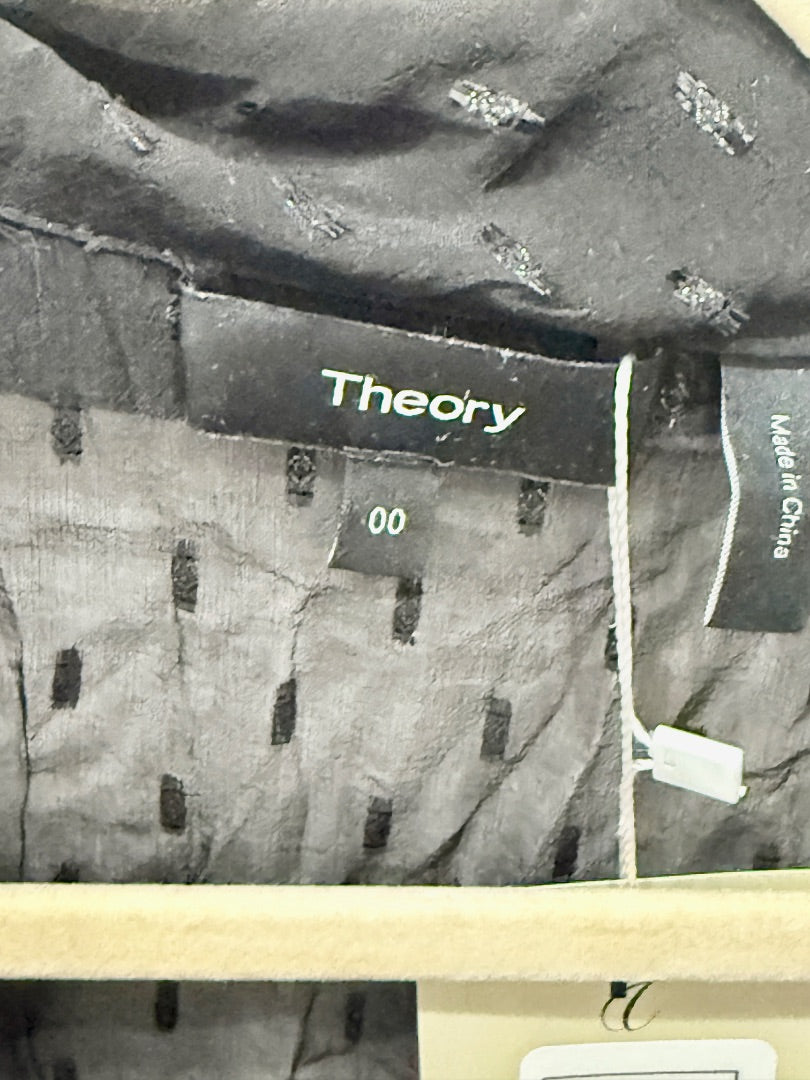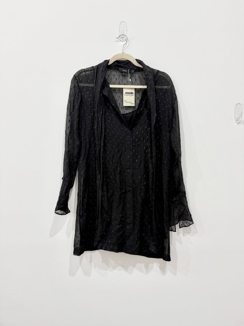 Theory Metallic Silk Scarf Bell Sleeve Mini Shirt Dress Black Women's Size 00