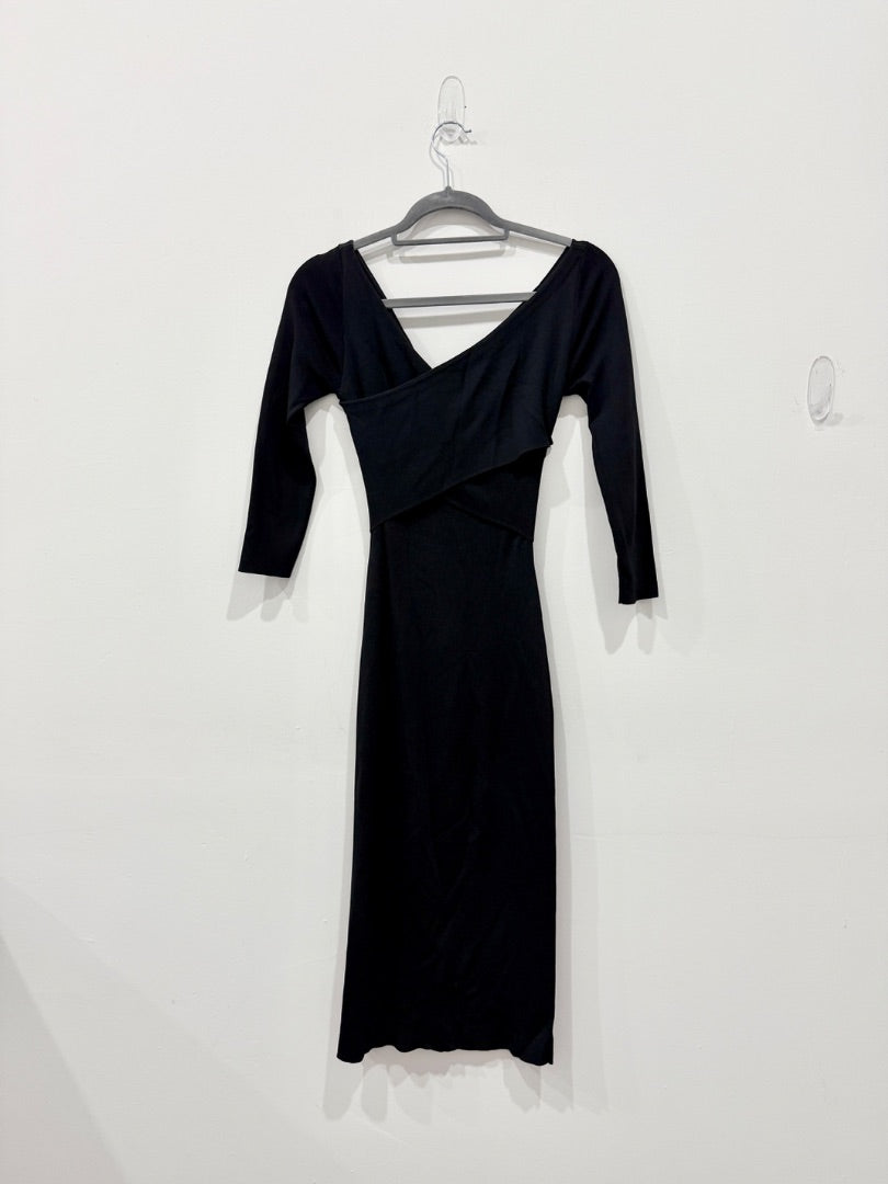 Theory Daverin Lustrate Bodycon Stretch Knit Midi Dress Black Women's Size P/XS