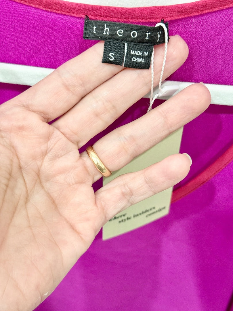 Theory Silk Red Piping Scoop Neck Sleeveless Tank Top Fuschia Women's Size Small