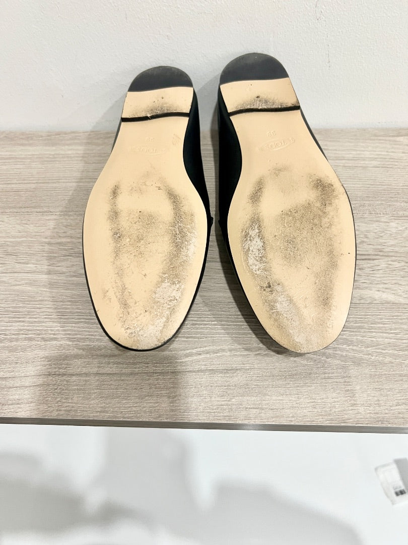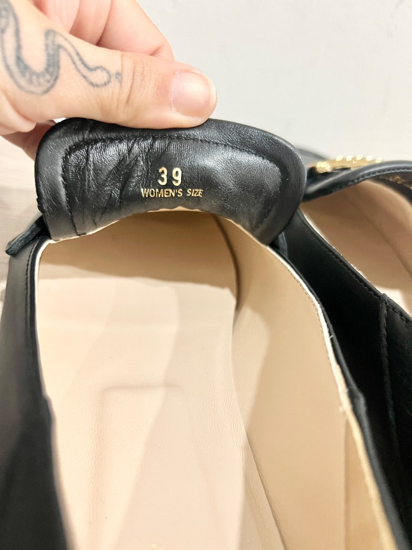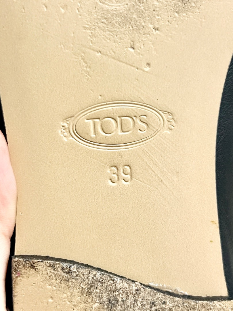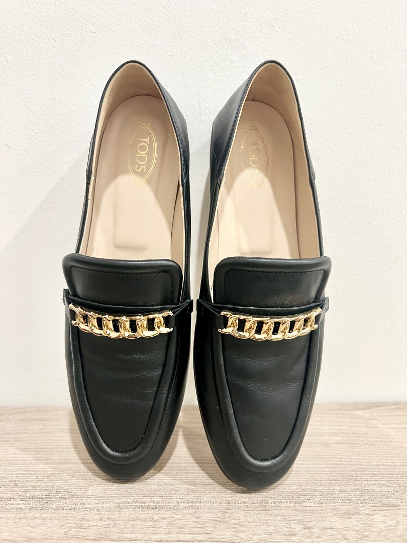 Tod's Calf Leather Slip On Flat Loafer with Gold Chain Catena Black Women's 39 / 8.5