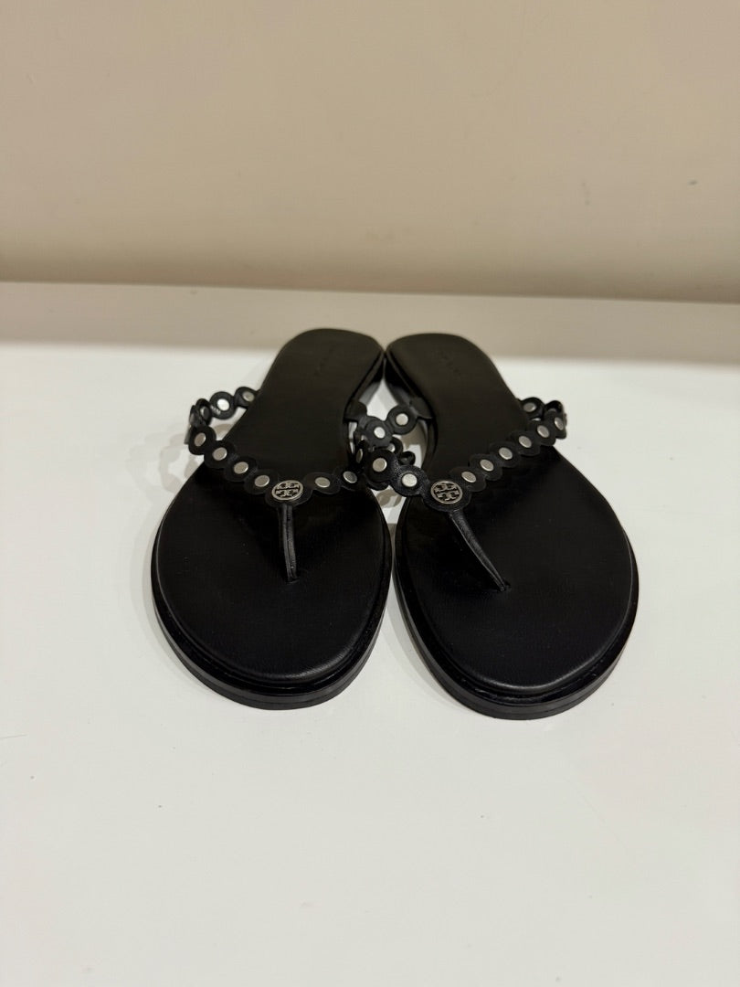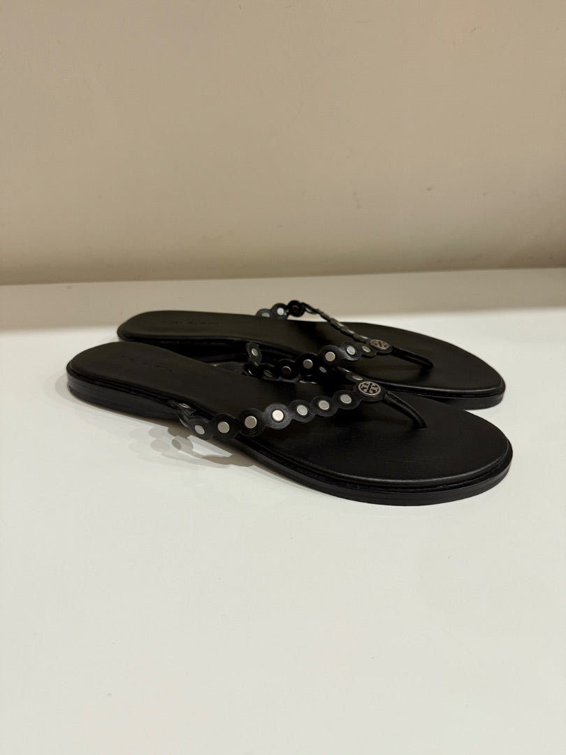 NWT Tory Burch Benton Scalloped Slip On Flat Thong Sandals Black Womens Size 9.5