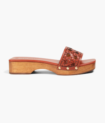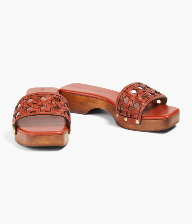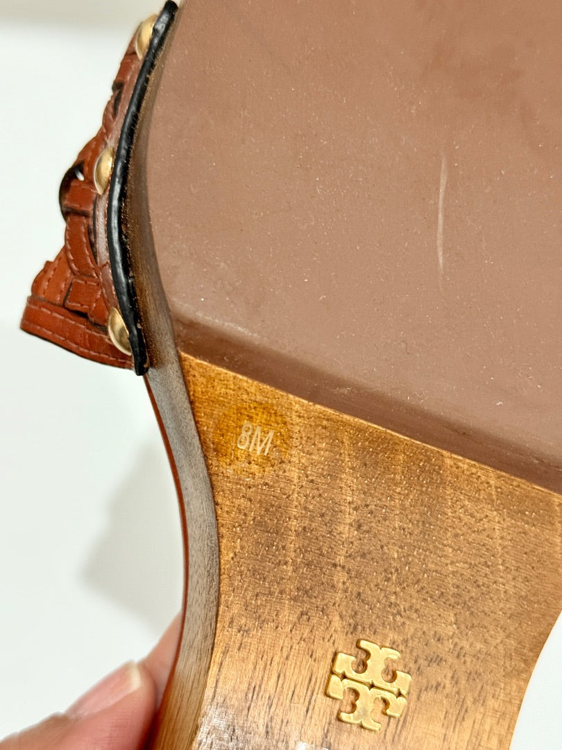 Tory Burch Basketweave Leather Clog Slides Sandals Brick Red Women's Size US 8