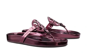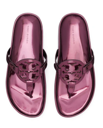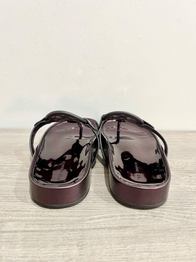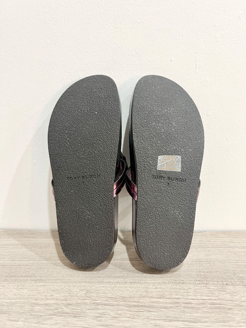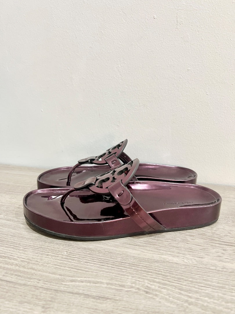 NWT Tory Burch Miller Cloud Metallic Slip On Flat Thong Sandals Merlot Women's 7