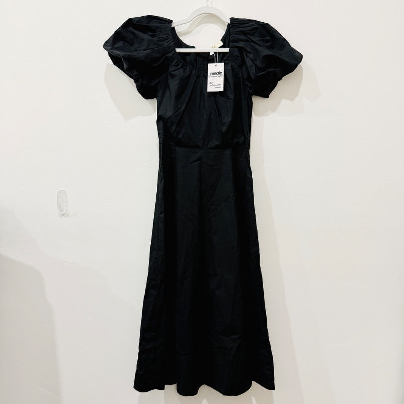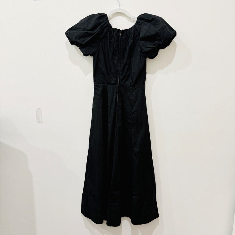 Ulla Johnson Imara Gathered Cotton-Poplin Puff Sleeve A-Line Midi Dress Black 0