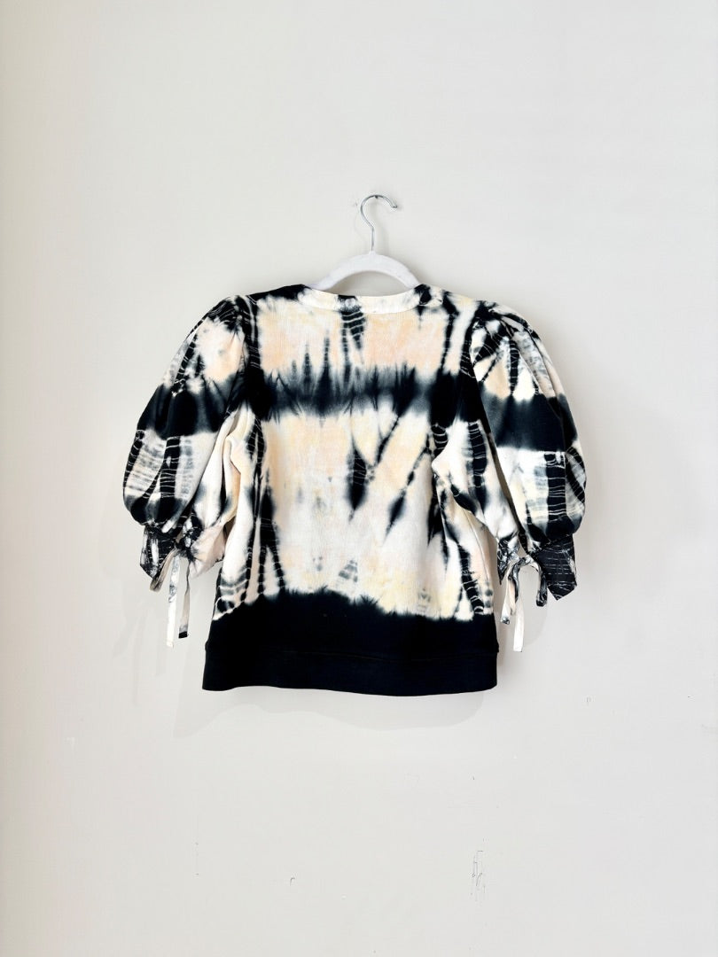 Ulla Johnson Tie-Dye Print Puff Sleeve V-Neck Sweatshirt Blue/Yellow Women's S