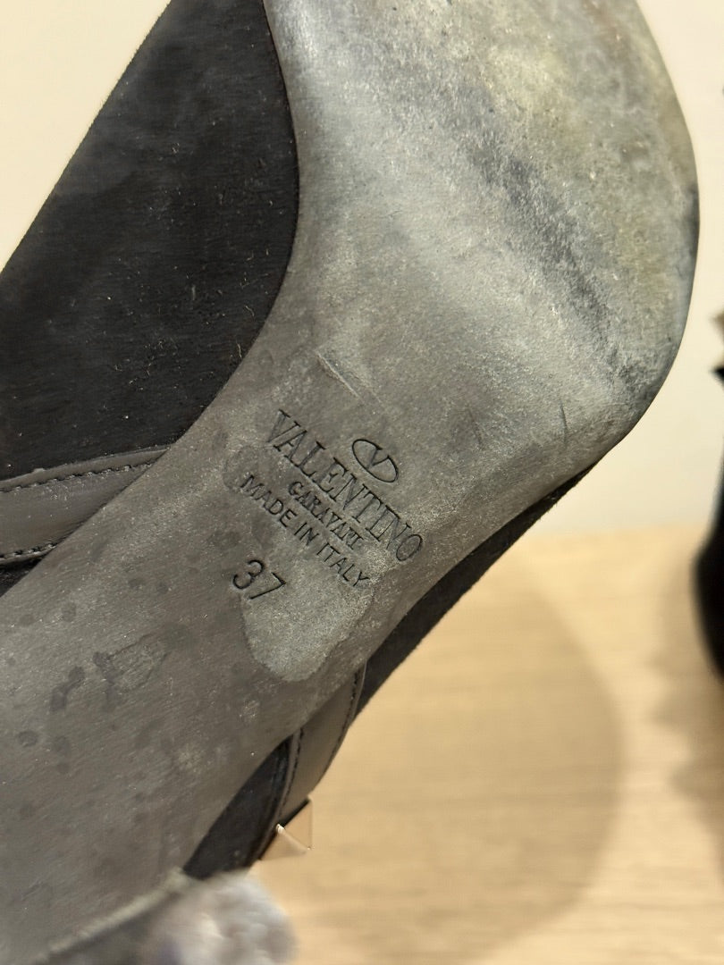 Valentino Garavani Suede Rockstud Stiletto Ankle Booties Black Women's EU 37