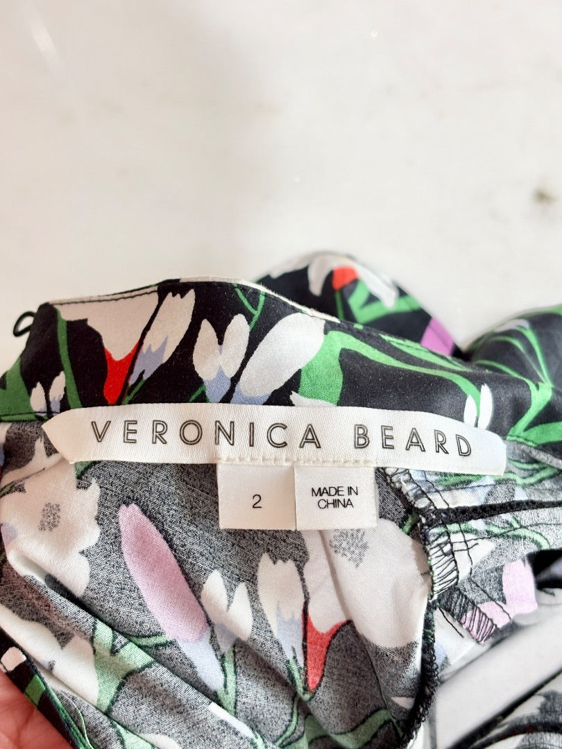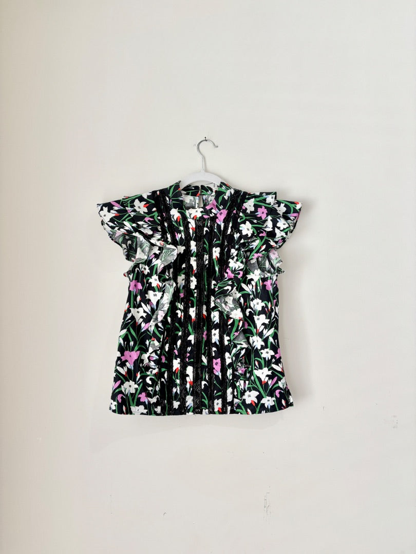 Veronica Beard black floral ruffle sleeve top cotton, 2