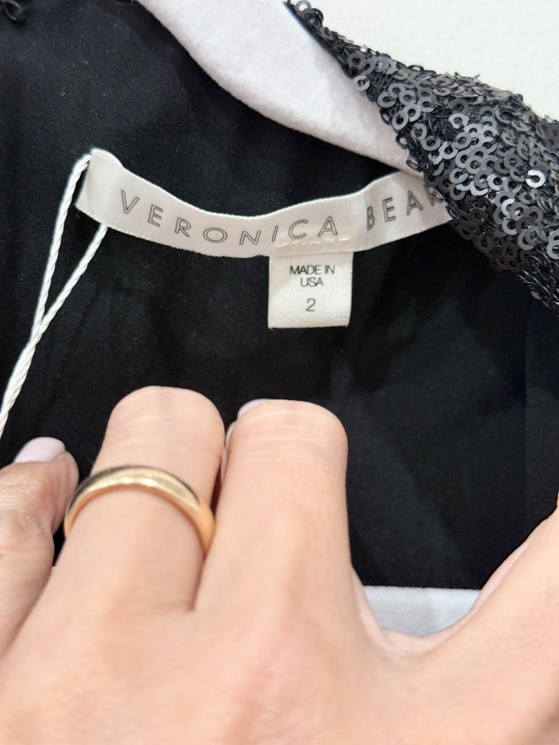 Veronica Beard Sequin V-Neck Bodycon Mini Cocktail Dress Black Women's Size 2