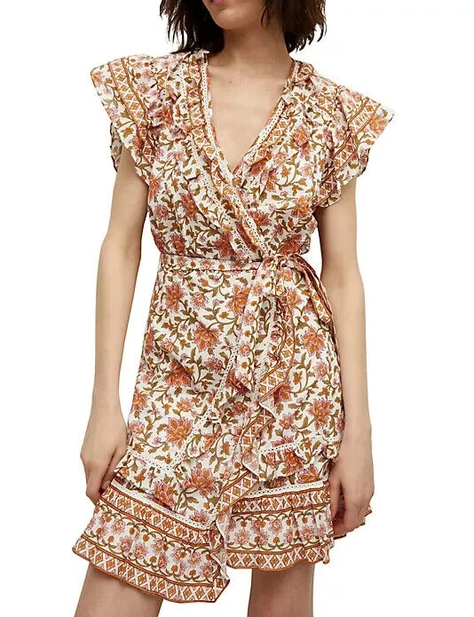 Veronica Beard Mikhail Floral Flutter Sleeve Mini Wrap Dress Orange Women's US 2