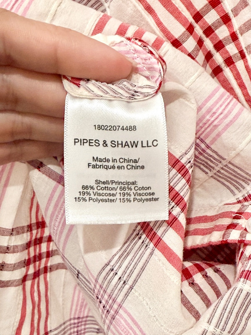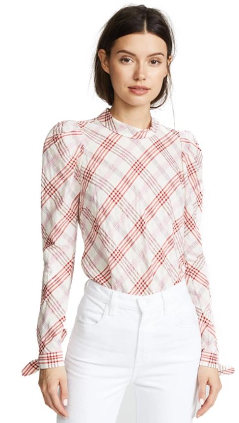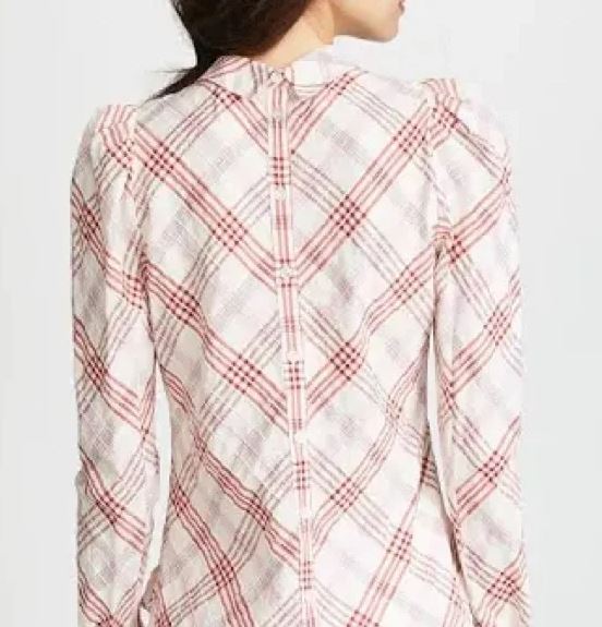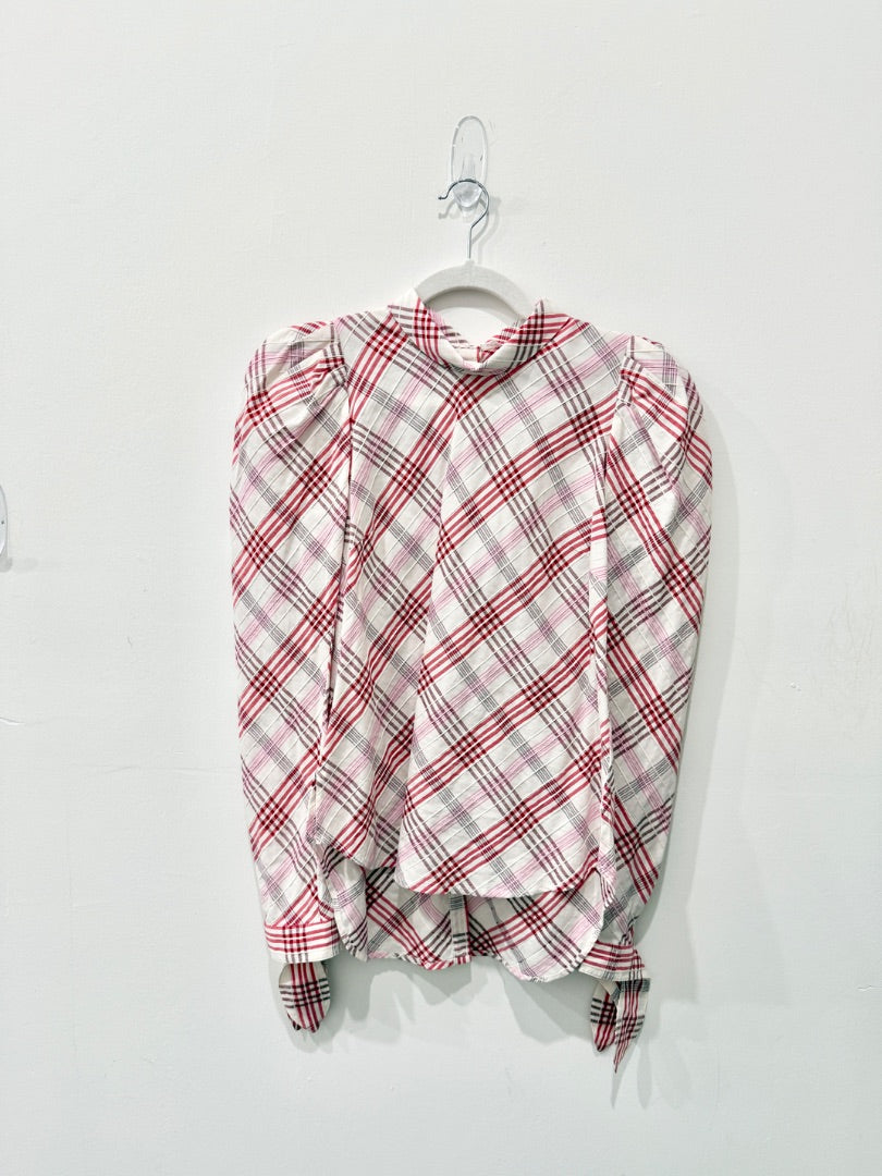 Veronica Beard Isabel Plaid Mock Neck Puff Sleeve Blouse Top Blush Pink Womens 0