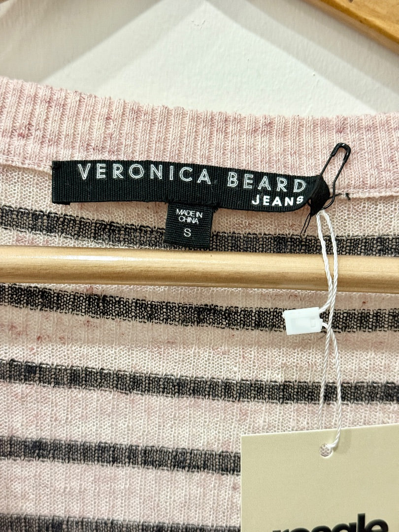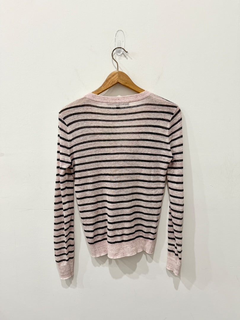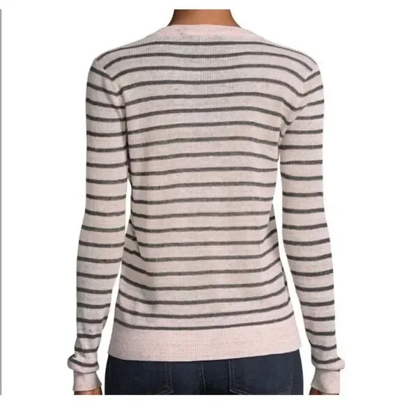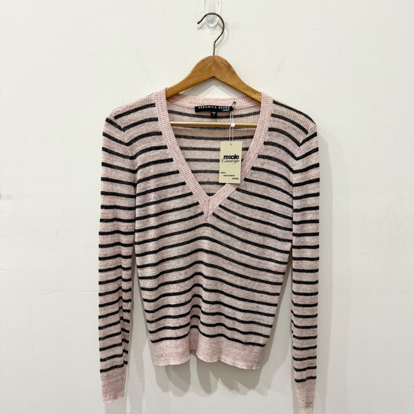 Veronica Beard Dean Striped Linen Blend V-Neck Sweater Pink/Black Women's Size S