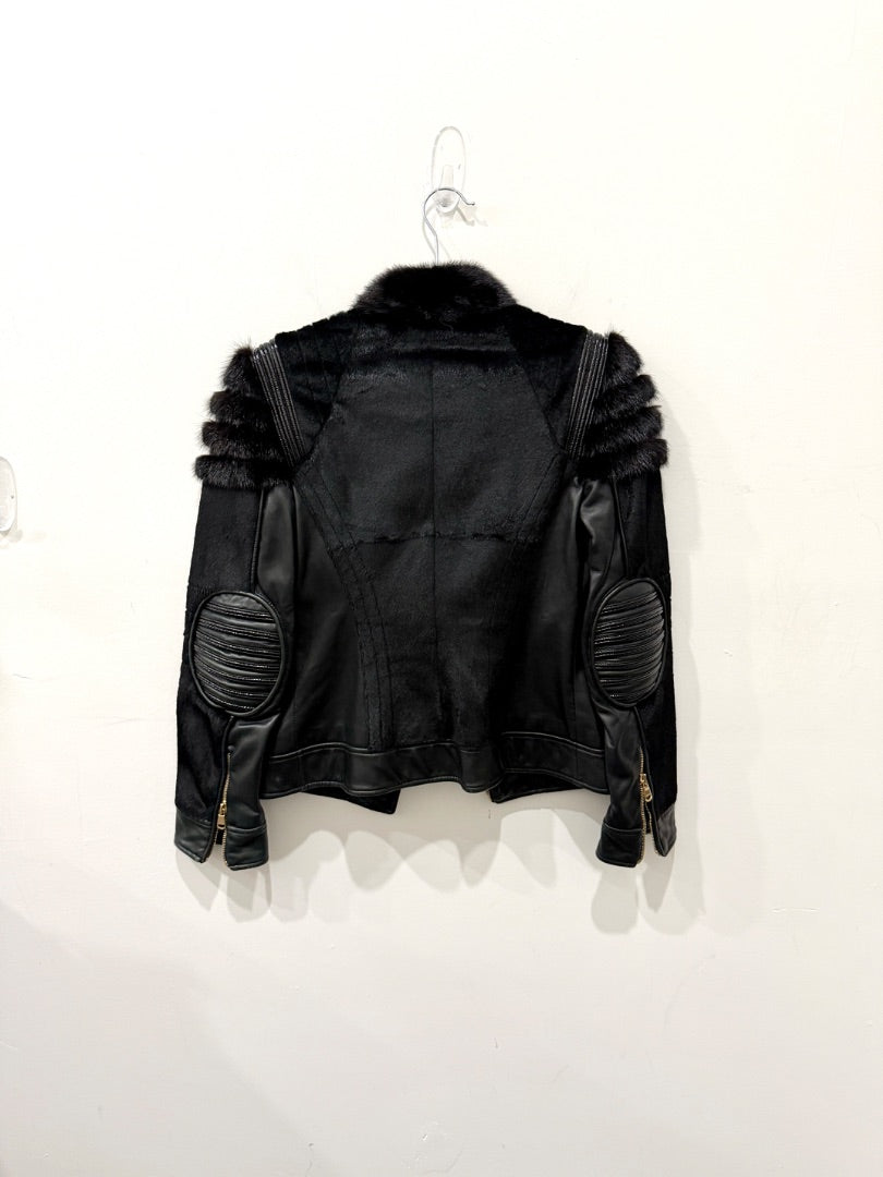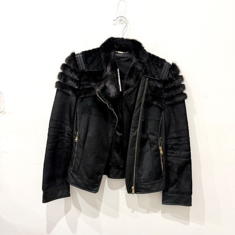 Versace Leather / Rabbit Fur Zip Up Moto Biker Jacket Black Women's 38 IT / US 2
