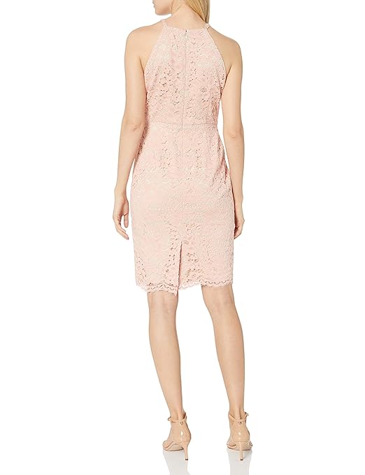 Vince Camuto Sleeveless Lace Halter Neck Sheath Dress Light Pink Women's Size 8