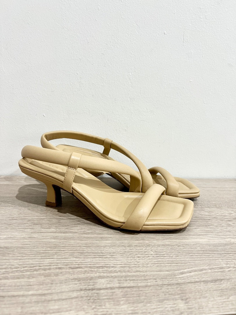 Vince Coline Tubular Leather Slingback Heeled Sandals Tan Nude Womens Size US 7