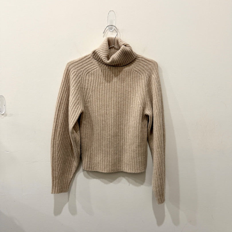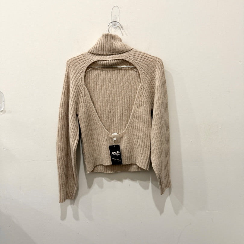 Vince Ribbed Turtleneck Cashmere Sweater with Open Back Tan Women's Size XXS