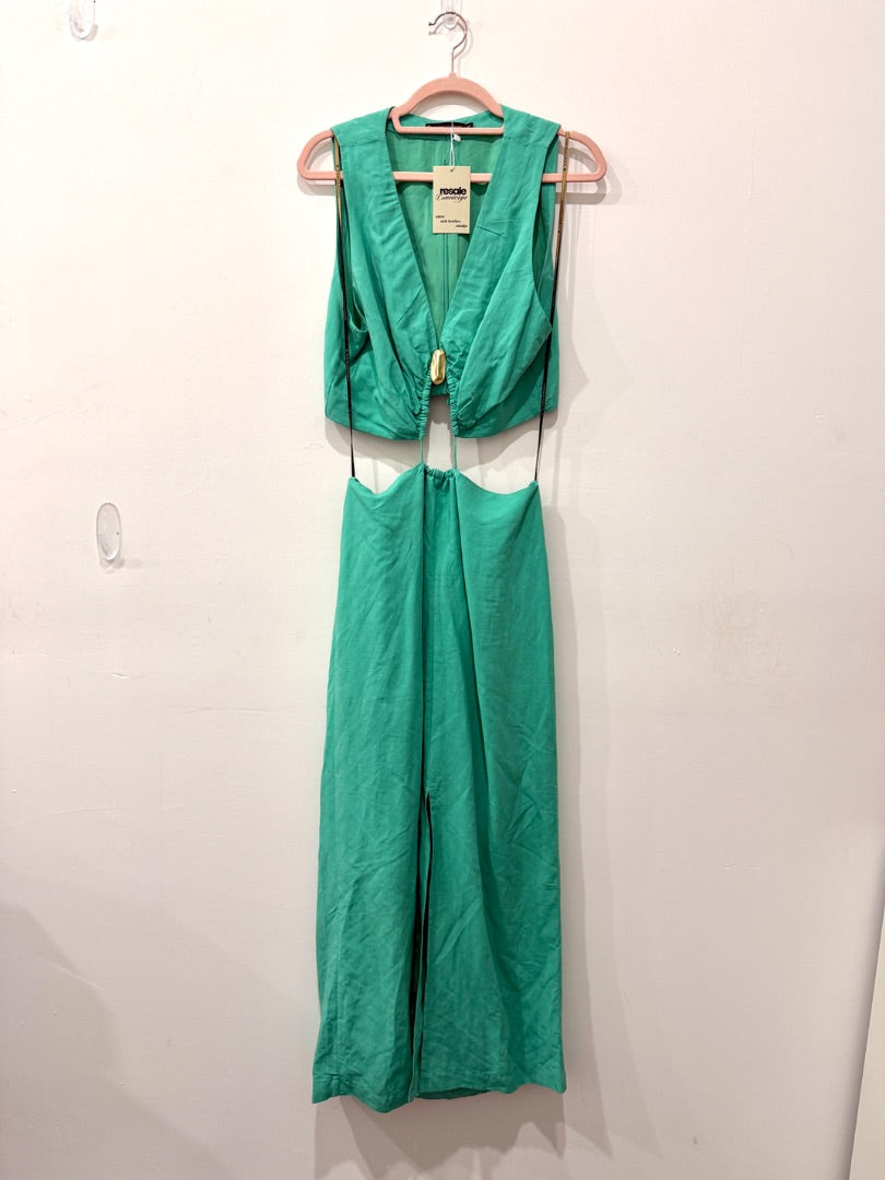 VIX By Paula Hermanny Gracie Front Slit Cutout Midi Dress Green Women's Size 6