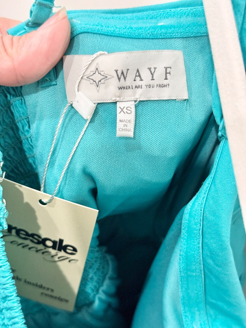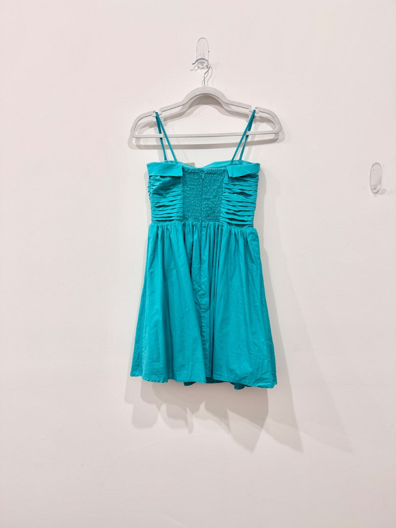 WAYF Sleeveless Gathered Stretch Cotton Skater Mini Dress Aqua Women's Size XS