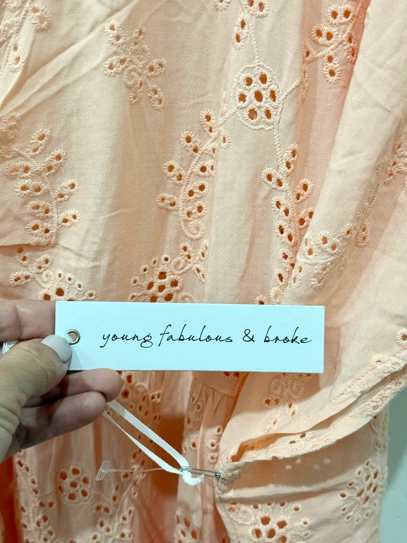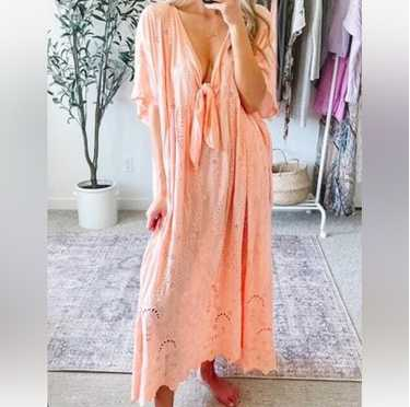 Young Fabulous & Broke Eyelet Tie Front Maxi Cover Up Dress Pink Women's Size XS