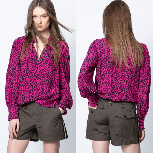Zadig & Voltaire Titus Print Leo Tunic Shirt Blouse Framboise Women's Size Small