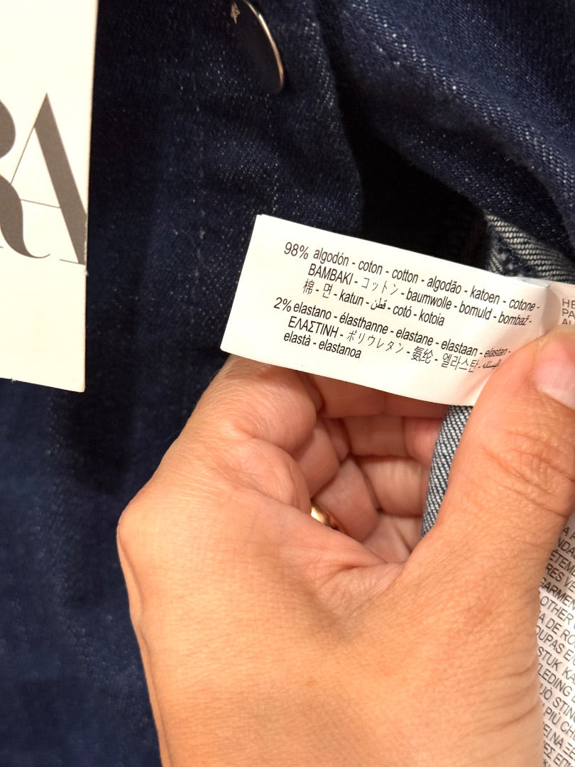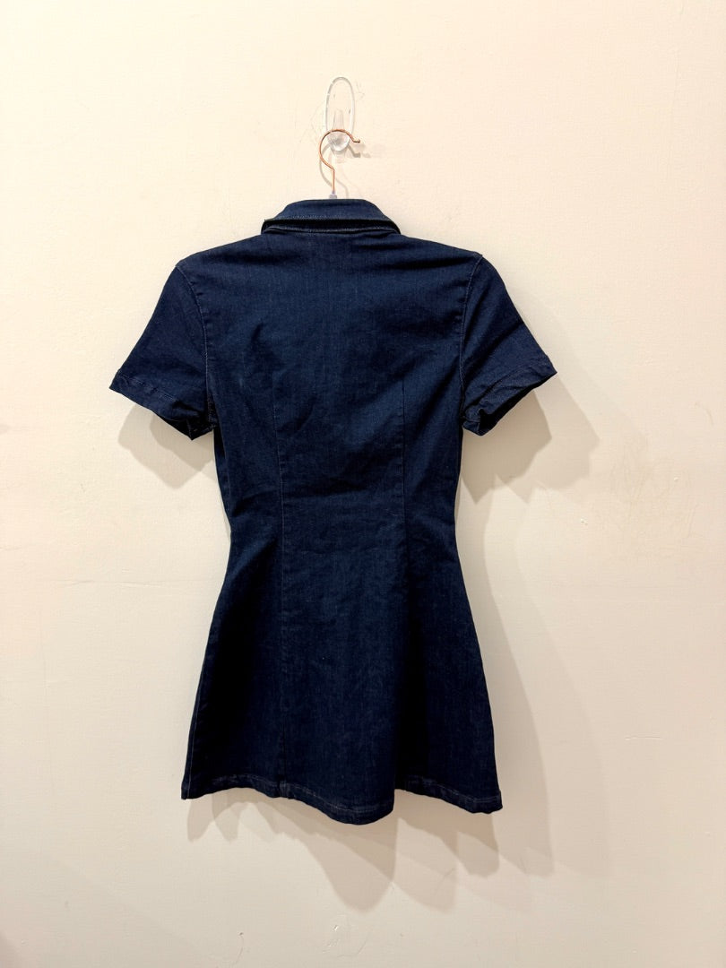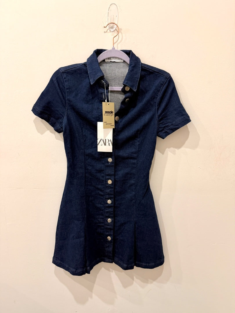 NWT Zara Pleated Slim Fit Stretch Denim Mini Shirt Dress Blue Women's Size Small