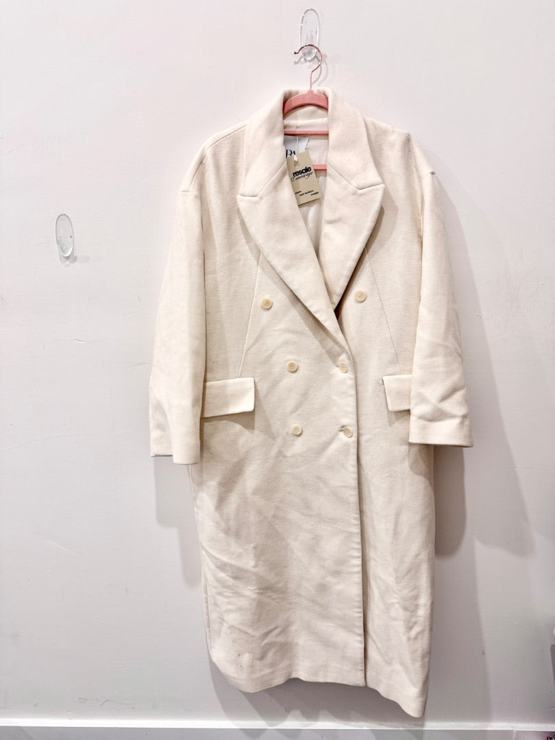 Zara Wool-Blend Double Breasted Button Oversized Coat Cream Women's Size Medium