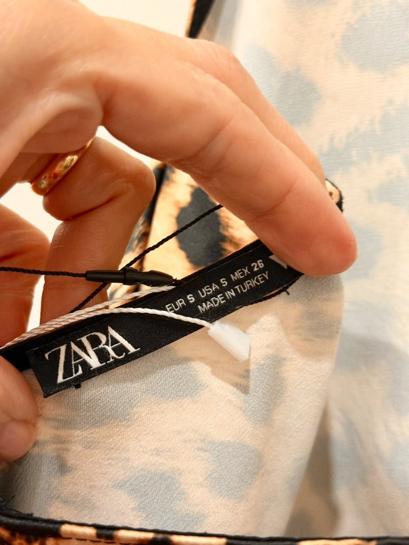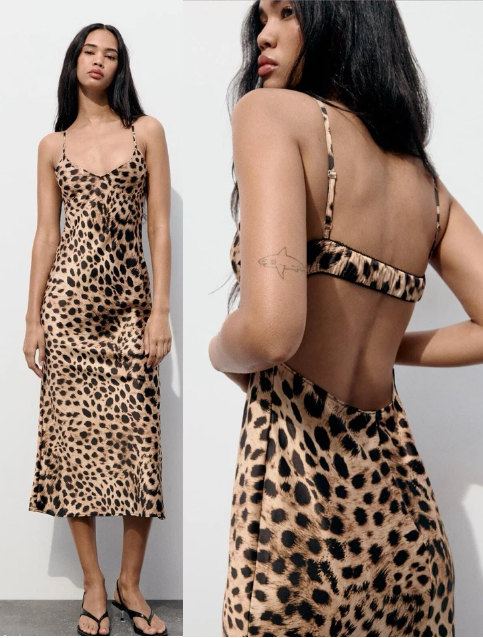 Zara Leopard Print Sleeveless Cami Strap Open Back Midi Slip Dress Brown/Black S