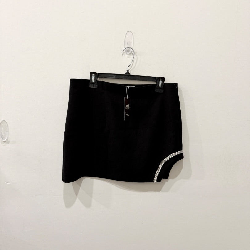 Zara High Waisted Cutout Mini Skirt with Rhinestone Trim Black Women's Size XL