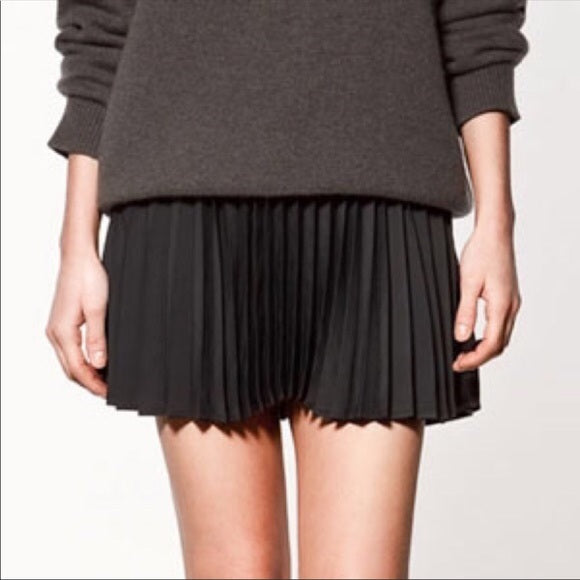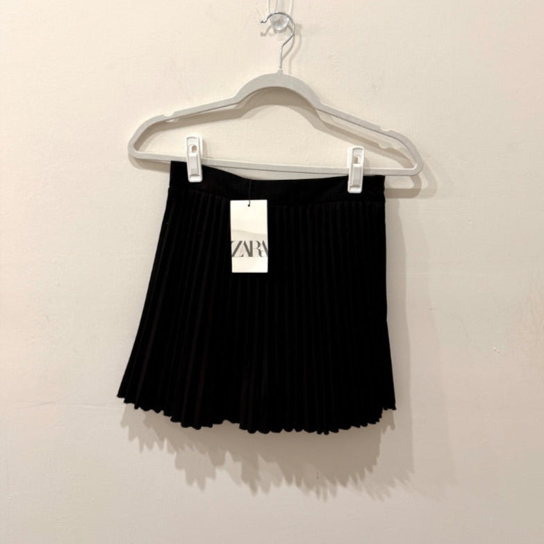 NWT Zara Pull On High Waisted Pleated A-Line Mini Skirt Black Women's Size XS
