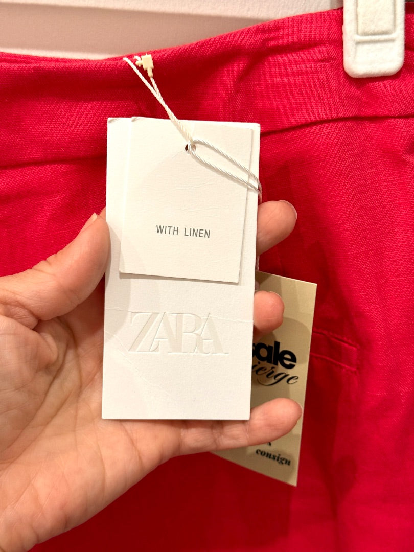These Zara linen-blend high-waisted pleated trouser shorts in bold red feature a tailored silhouette with a polished fit, perfect for chic summer styling.