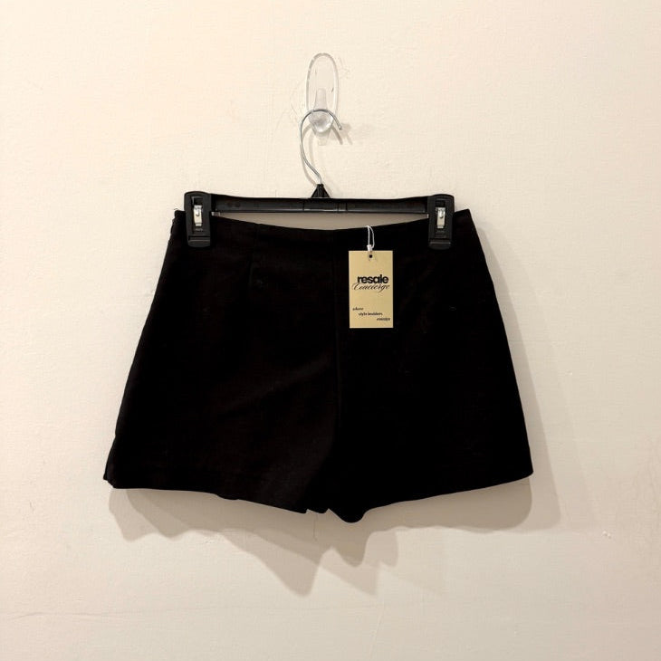 Zara Cotton Blend Ruffle Trim High Waisted Trouser Shorts Black Women's Size S