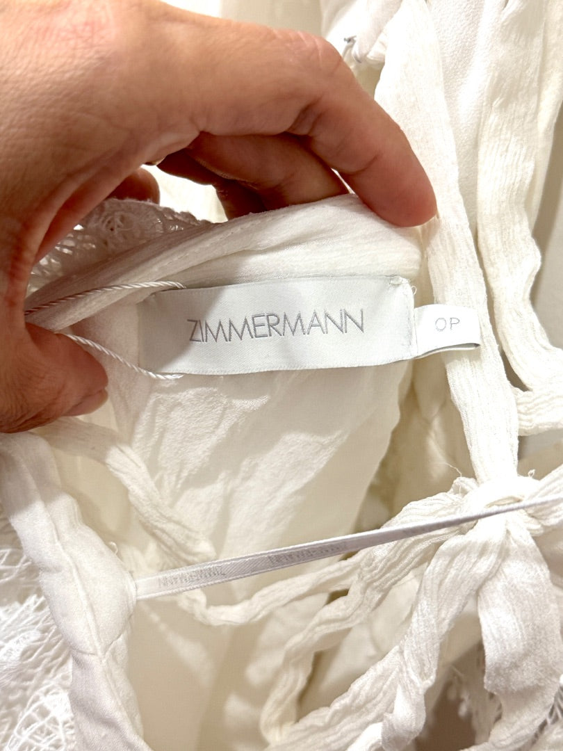 Zimmermann Suraya Lace Cut Out Lace Up Back Sheer Dress White Womens Size 0/P