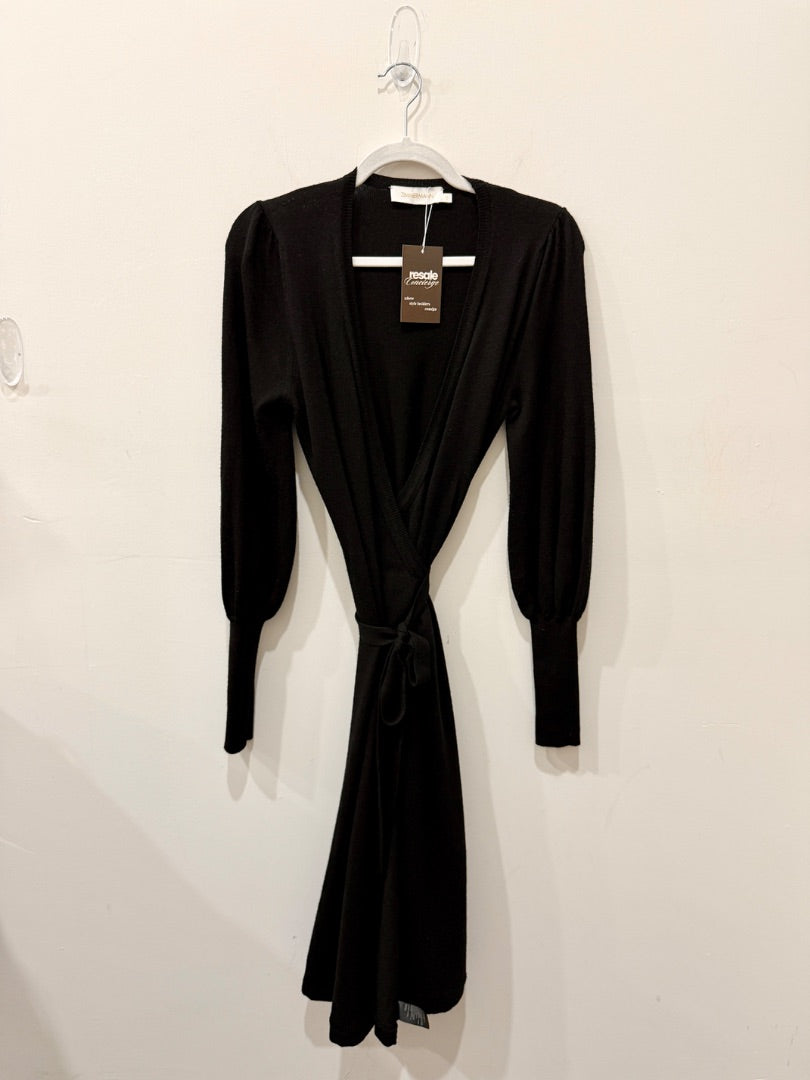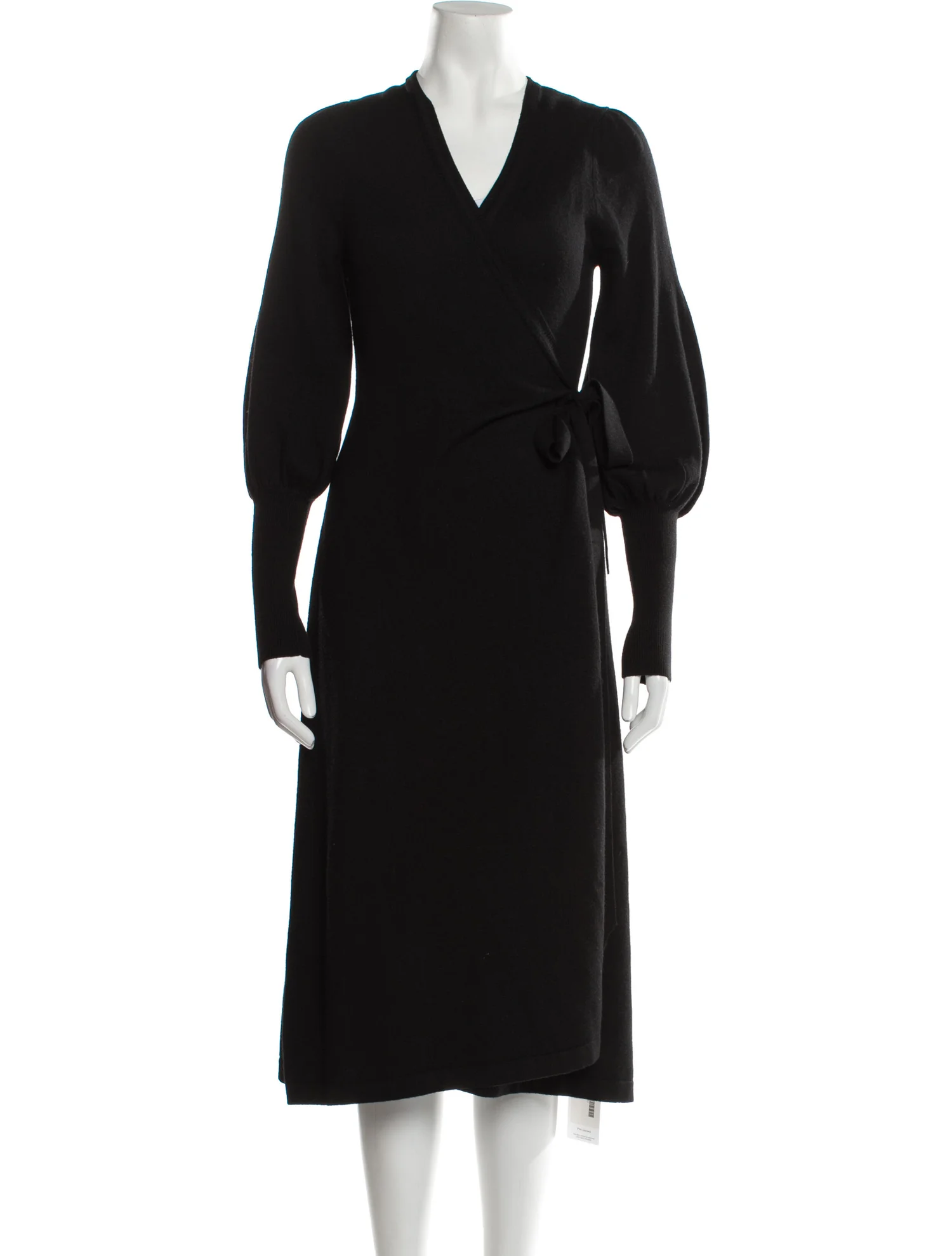 Zimmermann Merino Wool Long Sleeve Surplice Wrap Midi Dress Black Women's Size 0